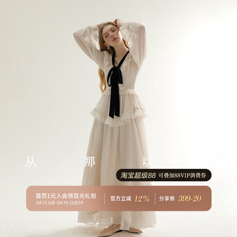 从那以后法式连衣裙长袖长裙高级感裙子白色礼服穿搭生日裙女早春