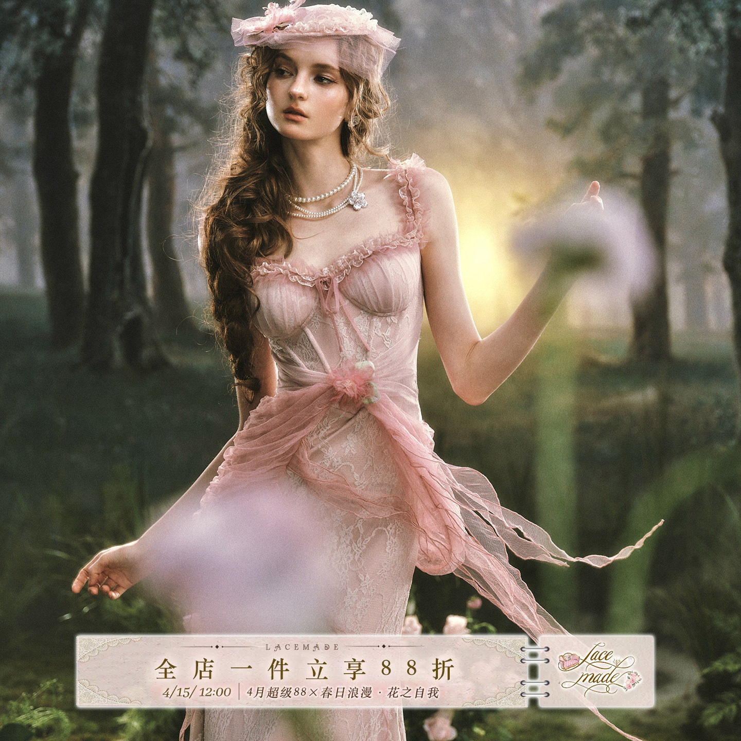 LaceMade 粉棠花【200万限定】法式连衣裙粉色仙女裙staycation裙