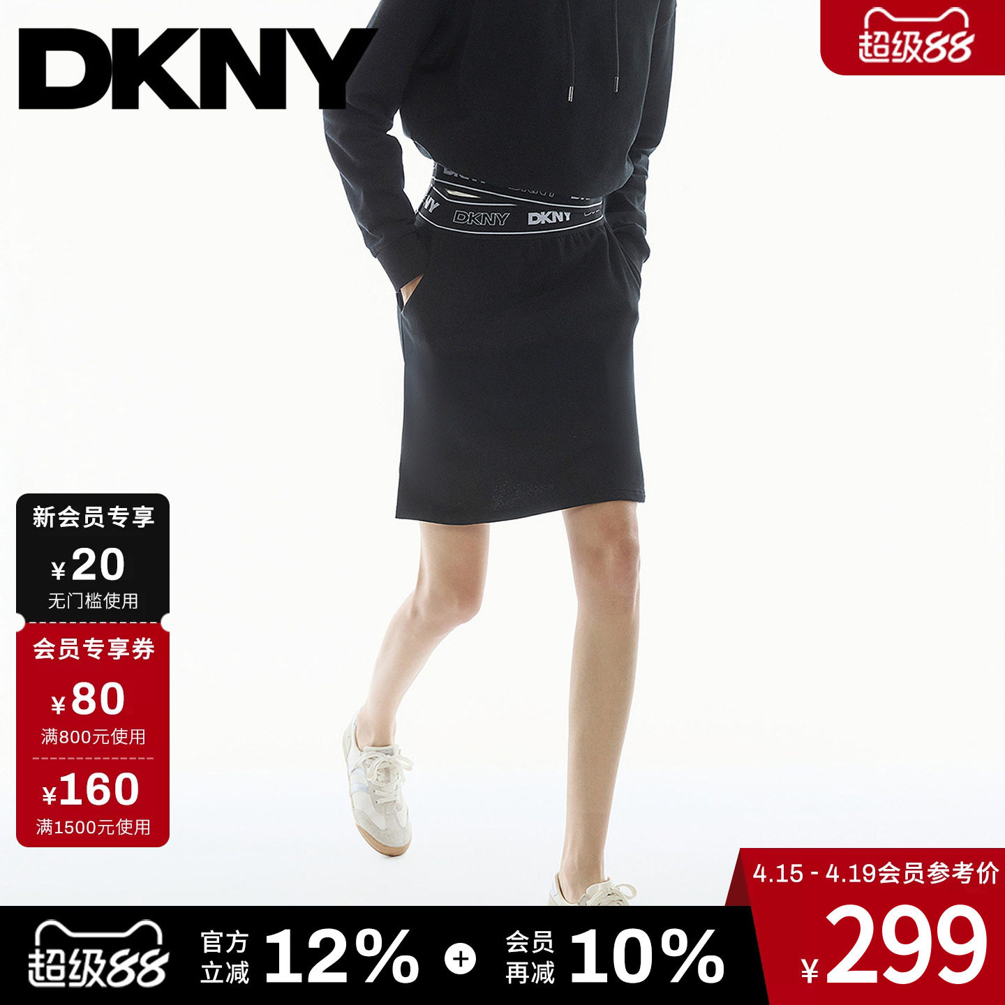 【100%棉】DKNY唐可娜儿26夏季新款半身裙女直筒裙子字母腰带时尚