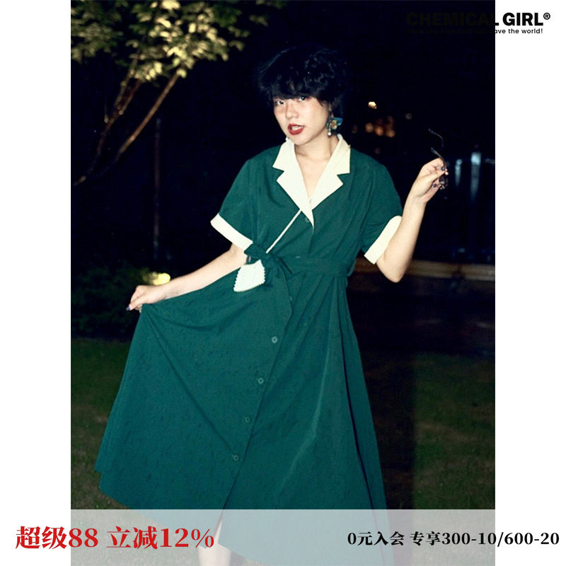 化学少女「天使爱美丽」法式复古连衣裙女夏季气质显瘦中长款裙子