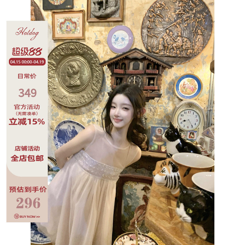 Hotdog 热狗很辣【花间柔光】两色网纱连衣裙女精致温柔气质裙子