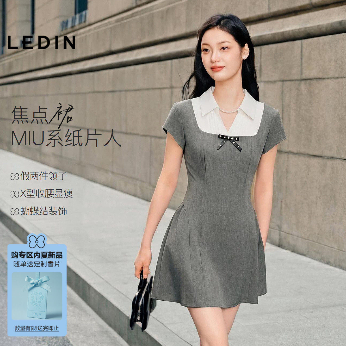 【焦点裙】乐町收腰版学院风高智通勤连衣裙女26夏季新款短款裙子