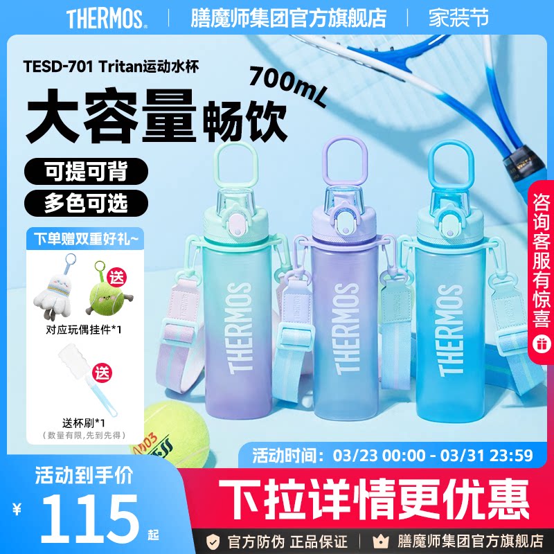 膳魔师夏季Tritan塑料运动水杯男女生便携可拎大容量水壶TCSV-750