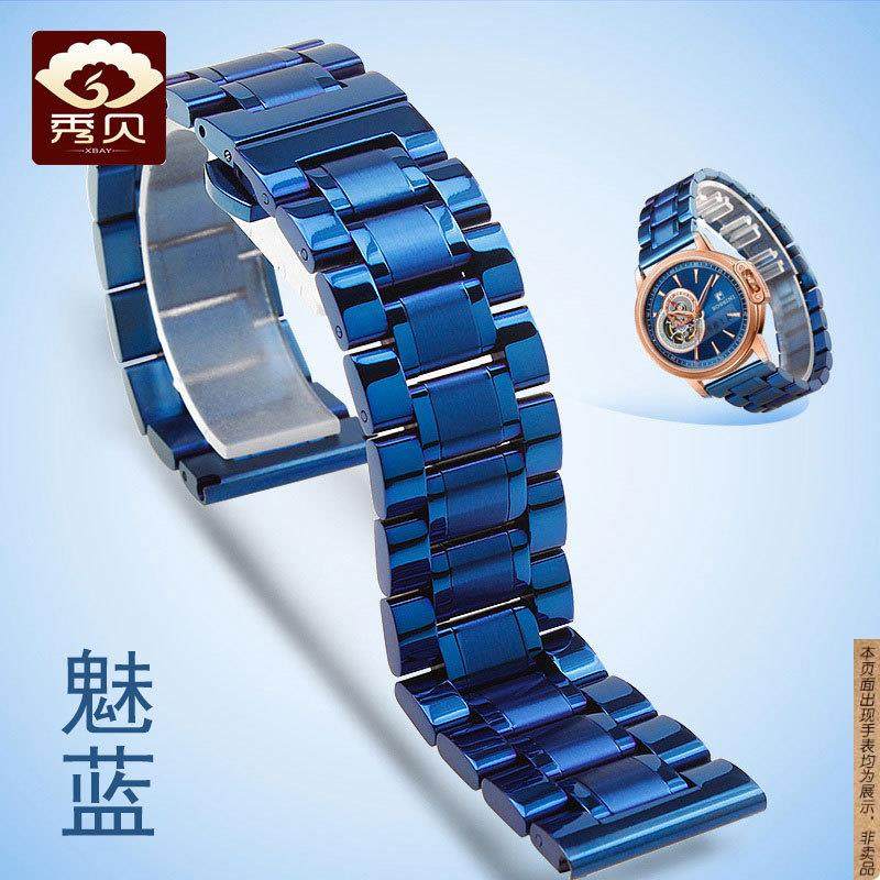 原厂代用手表链罗西尼8633蓝色手表带钢带天王手表配件男表带