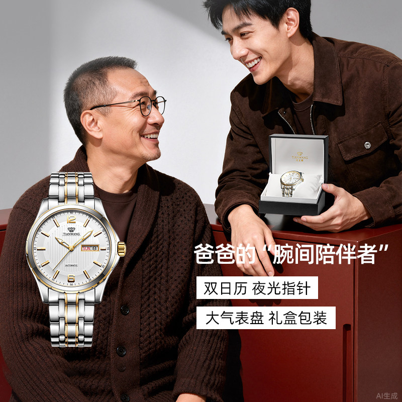 送爸爸老公全自动男士机械防水天王手表日历商务男款实用礼物5825
