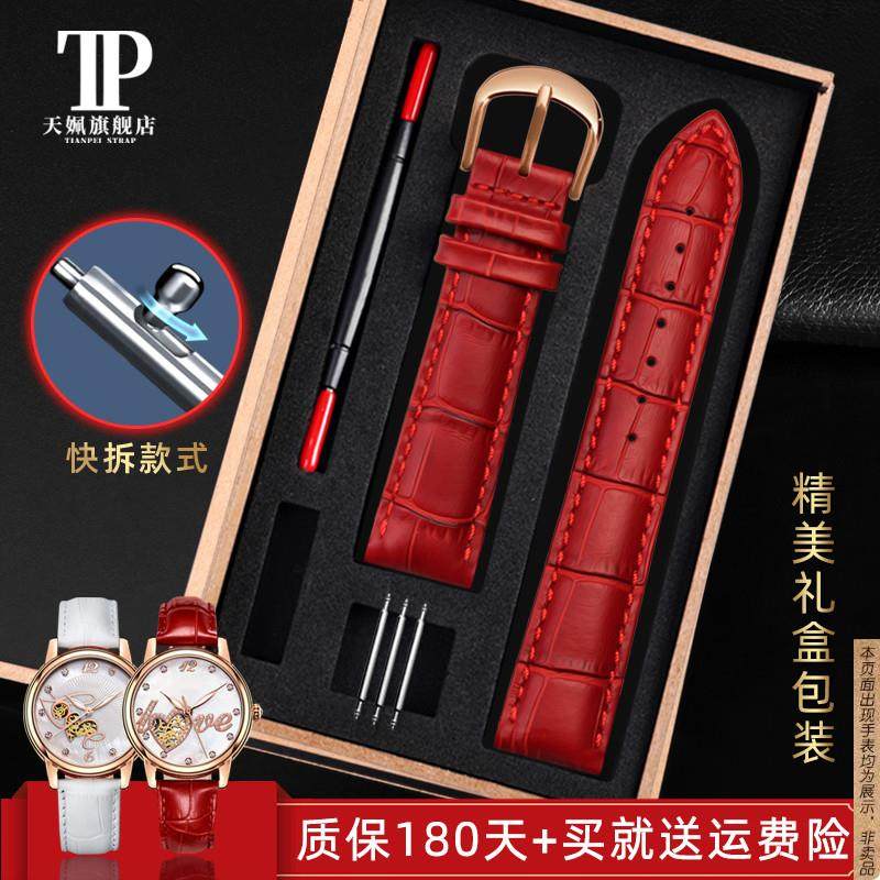 适配铁达时芙丽天王手表带 真皮表带男女红色表链皮带配件16mm