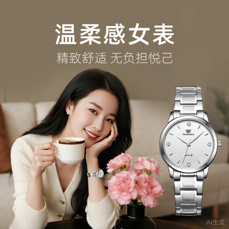 送女生精致高级石英表天王手表女款轻奢小众女士生日圣诞新年礼物