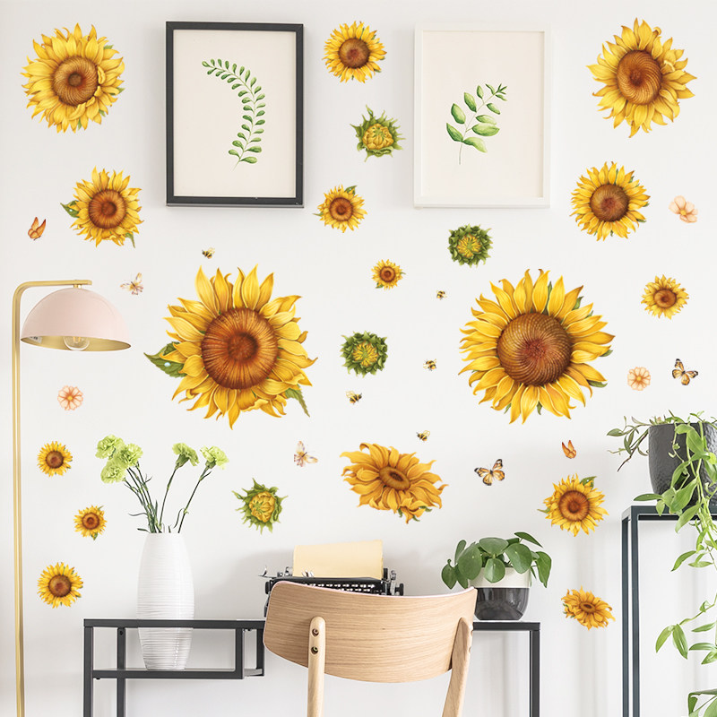 速发向日葵花朵墙贴纸小清新植贴粘厅卧室温馨自客背景墙物房门贴