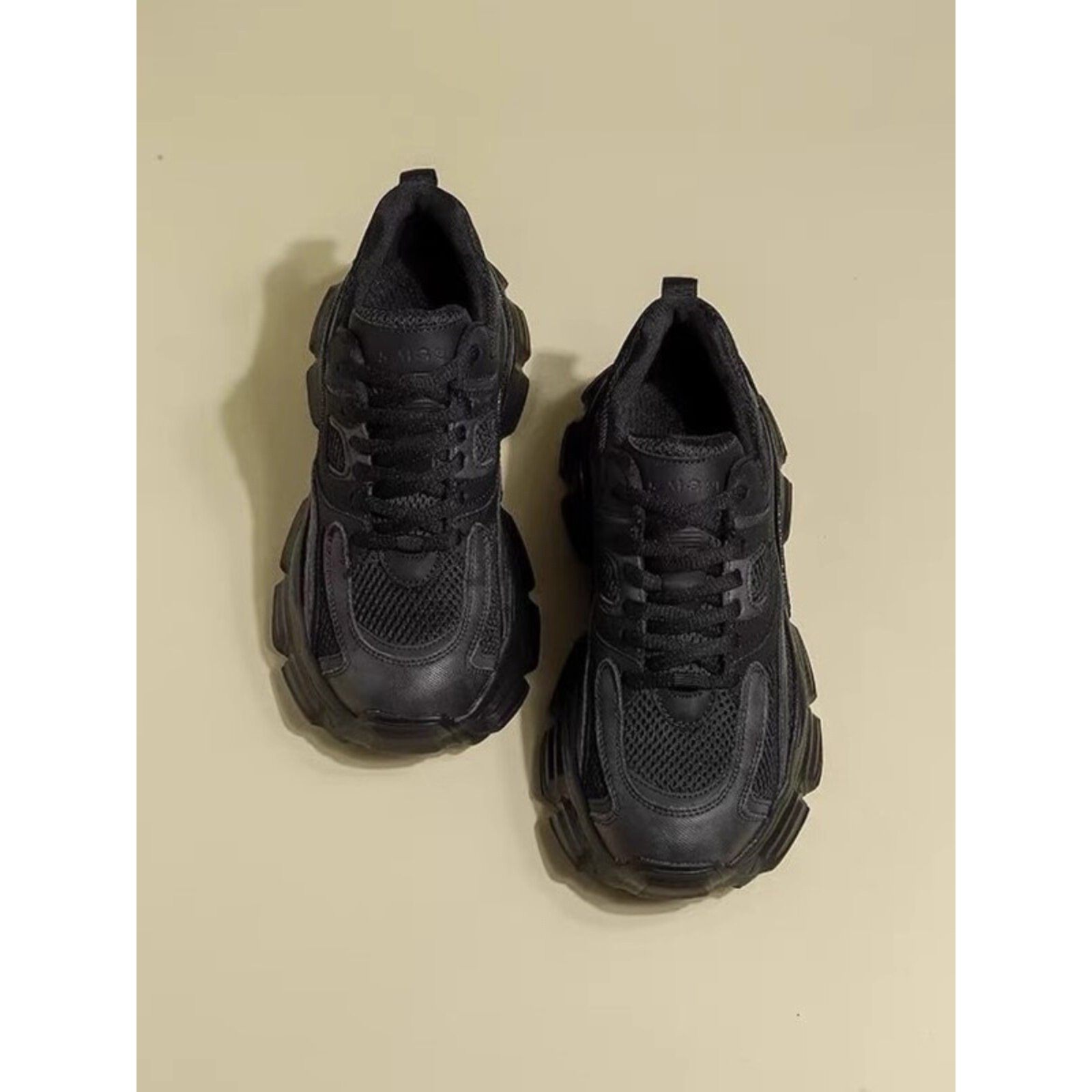 玛速主义2025新款厚底运动鞋女冬百搭透气跑步鞋休闲黑色老爹鞋潮