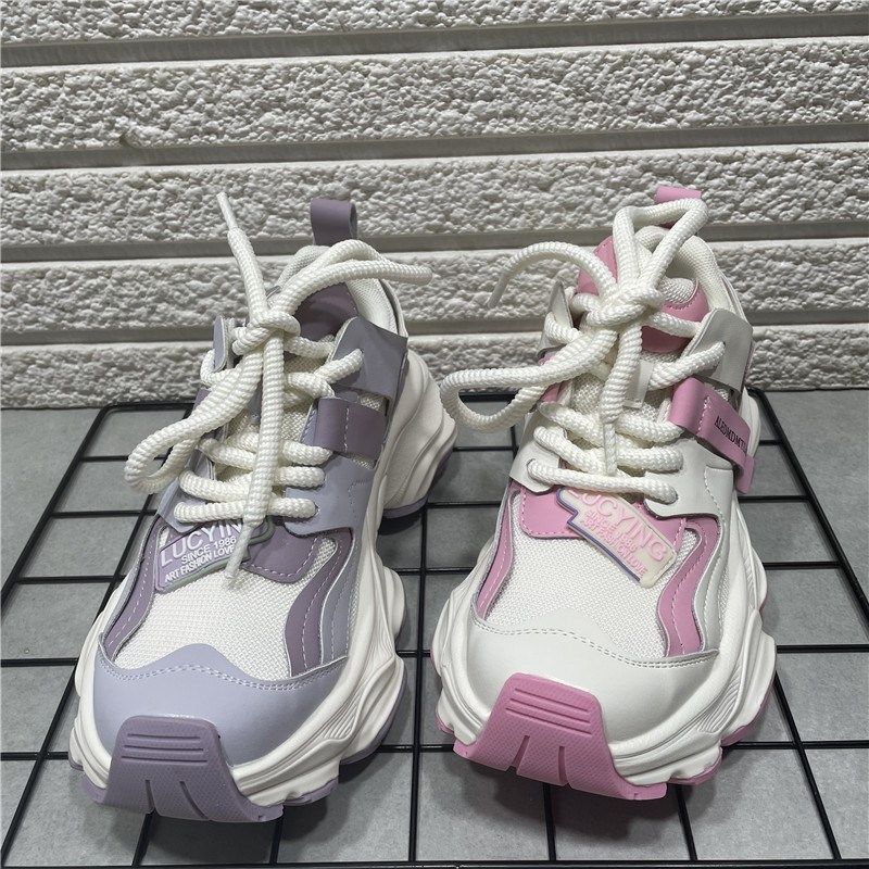 环球今年流行的爆款紫色老爹鞋女2026新款秋冬厚底百搭休闲运动鞋