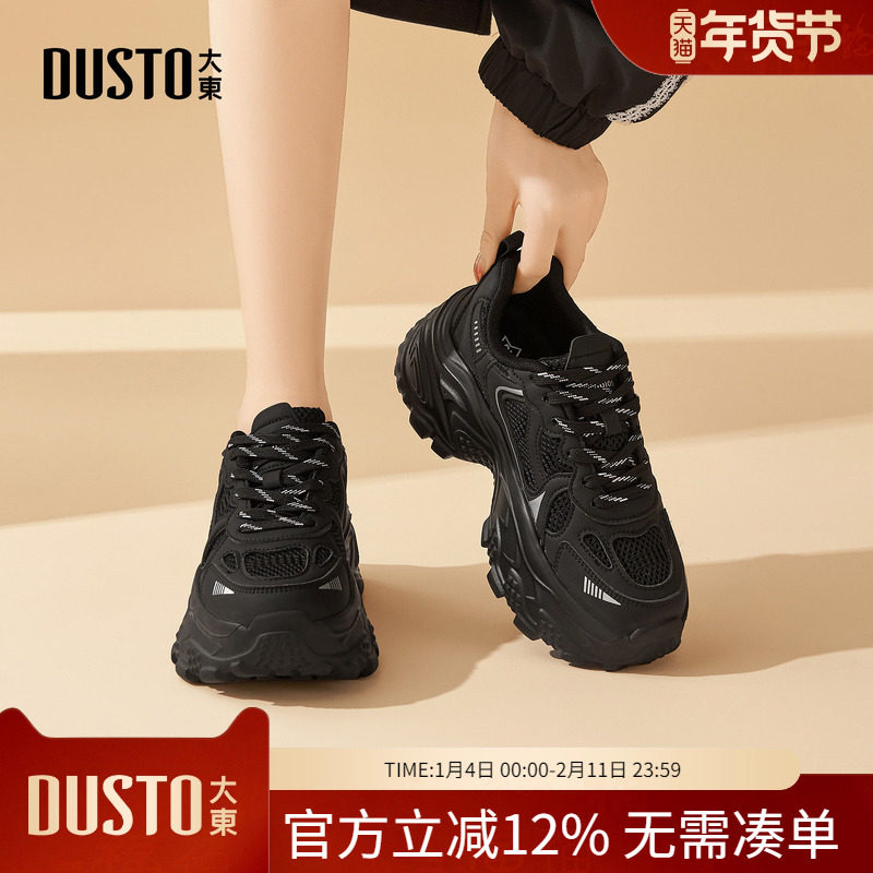 大东dd黑色老爹鞋女2026新款春季复古休闲鞋增高厚底运动鞋女鞋子