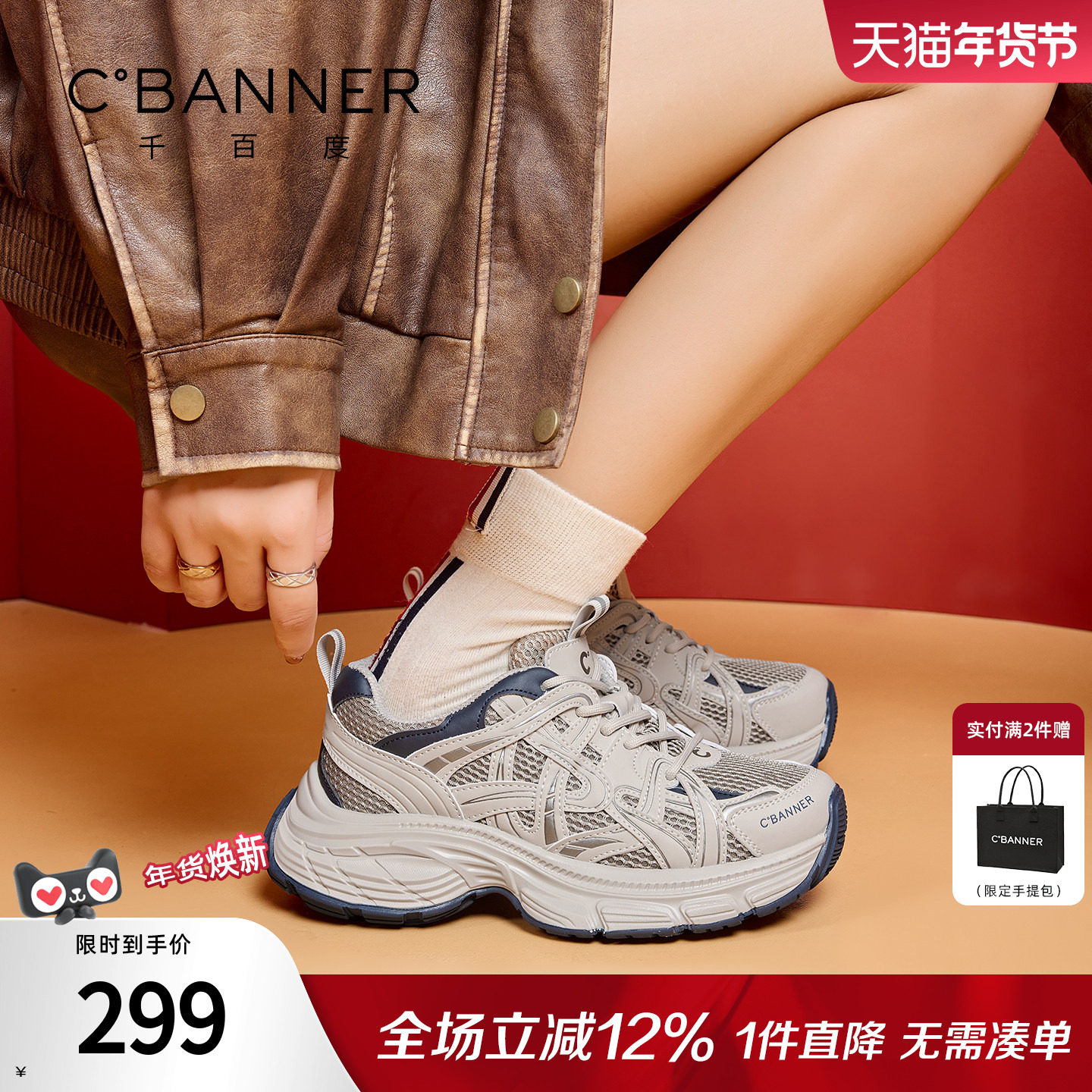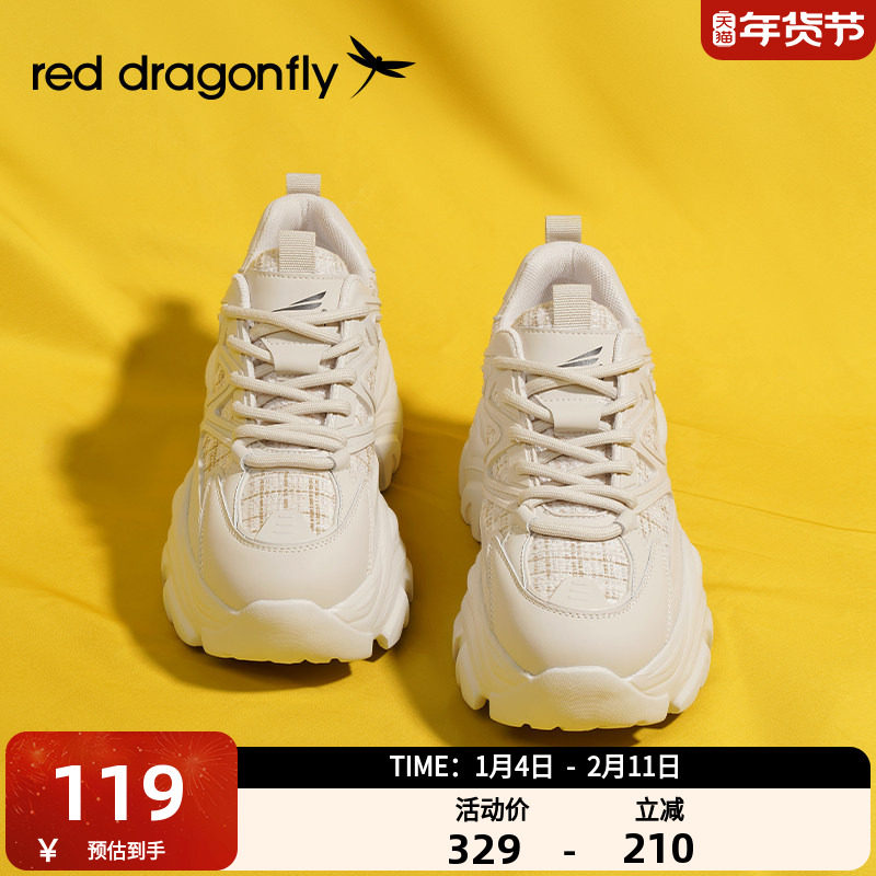 红蜻蜓小香风老爹鞋女秋冬季新款轻便透气小个子增高厚底运动鞋女