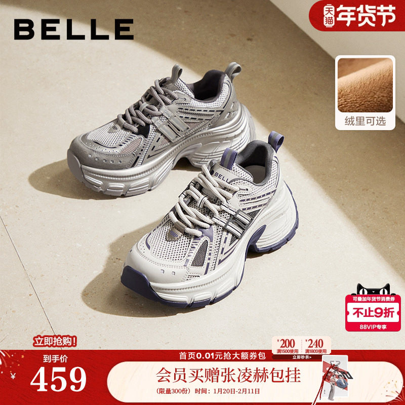 张凌赫同款百丽蓝鲸灰色老爹鞋男女鞋新款厚底高帮加绒运动鞋子预