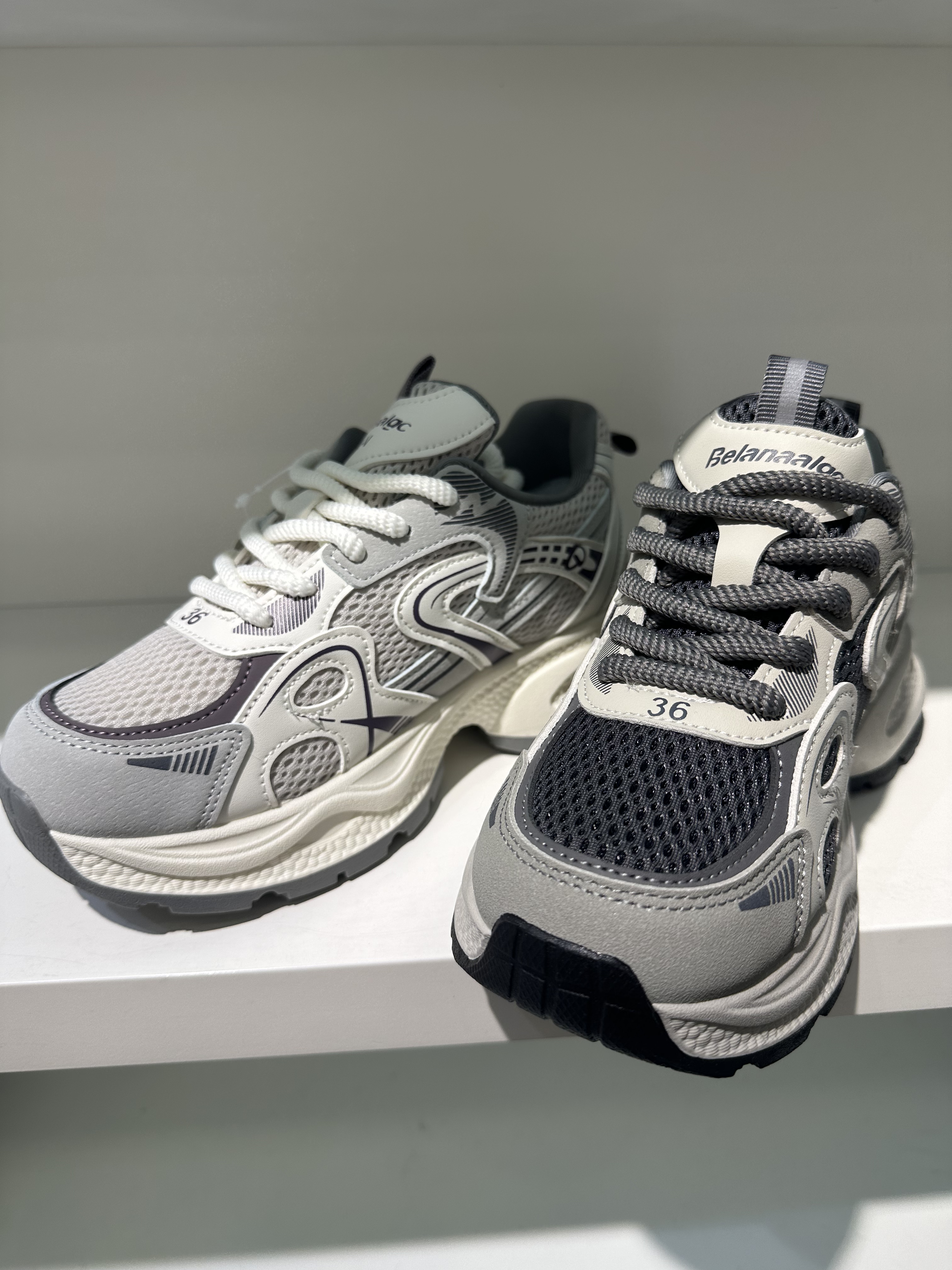 月芽儿银色厚底运动鞋女2025春季新款休闲时尚网面透气软底老爹鞋