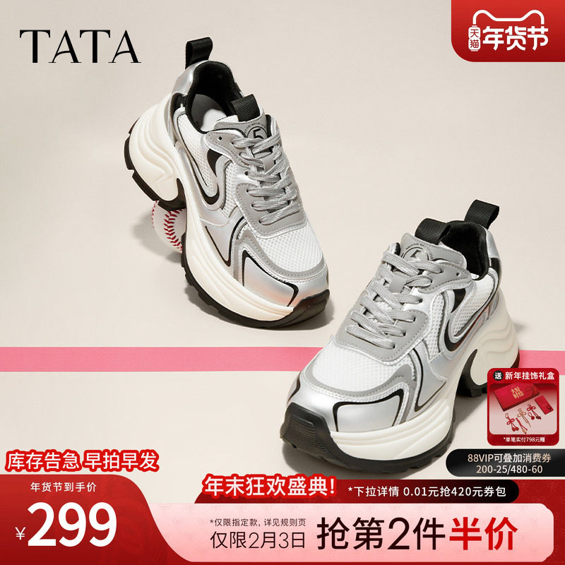 极光TATA他她银色复古老爹鞋女鞋轻便厚底运动鞋女休闲鞋DGAG1AM4