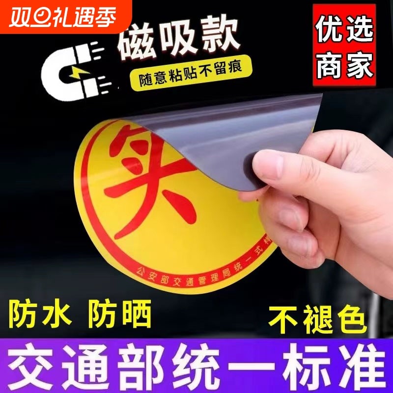 实习车贴新手上路磁吸反光贴汽车的标志牌车辆统一标准小车用粘贴