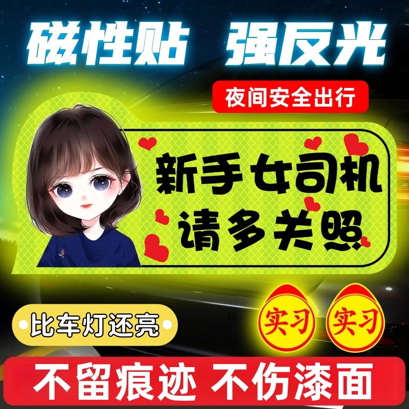 实习车贴新手上路反光磁贴汽车贴纸创意实习期专用磁吸标志女司机