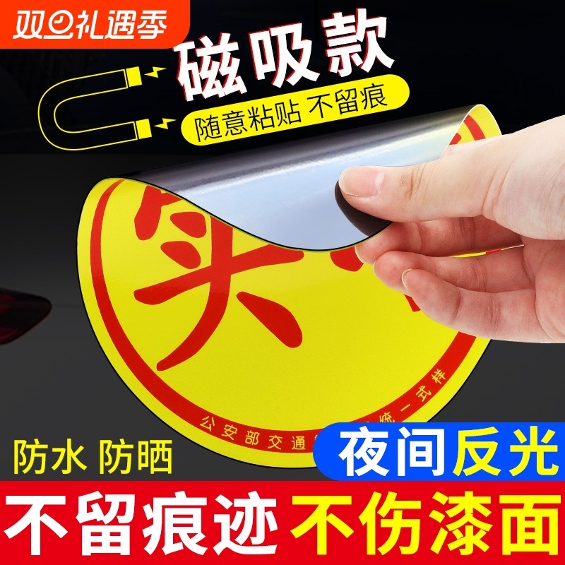 实习车贴新手上路磁吸反光贴汽车标志牌车辆统一小车用粘贴式贴纸