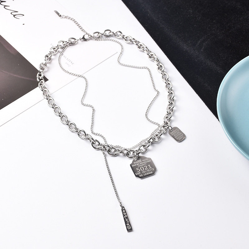 欧美ins钛钢潮牌项链男女嘻哈字母吊坠时尚短款双层叠戴项饰潮流
