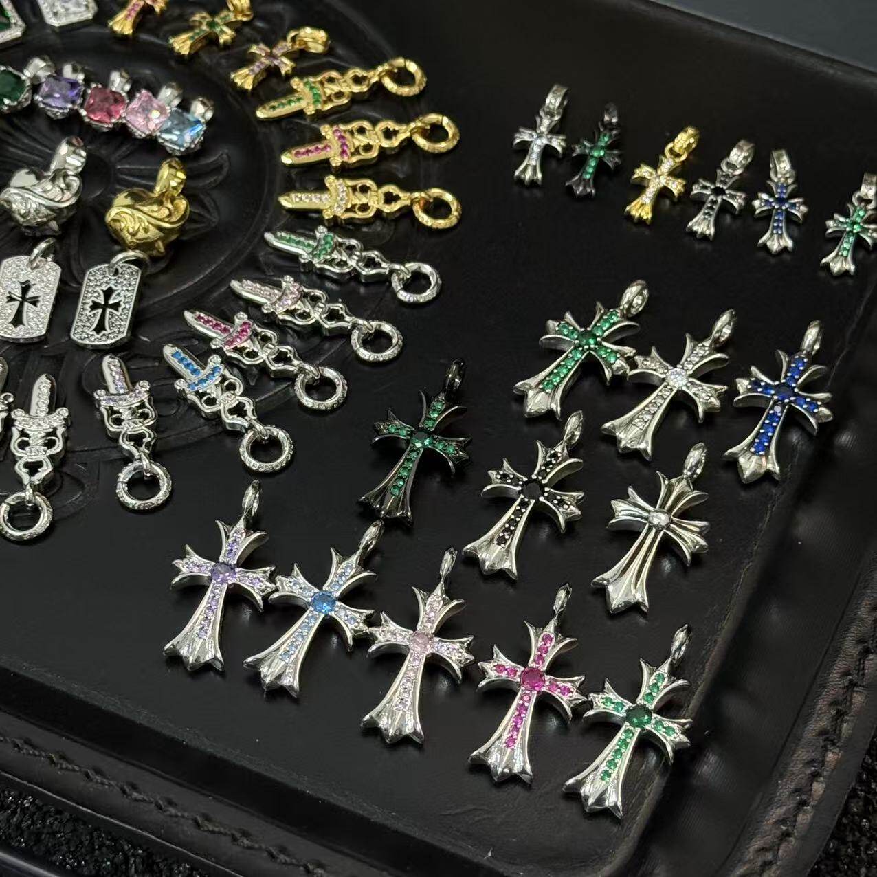 CH潮牌项链吊坠配件DIY镶钻方糖宝剑项链配件复古做旧十字架吊坠