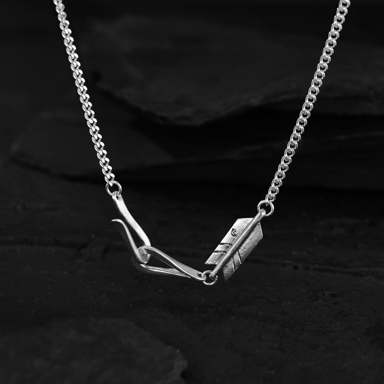 一休老银匠 925纯银LA箭头鱼钩潮牌项链 余文乐同款复古素银链