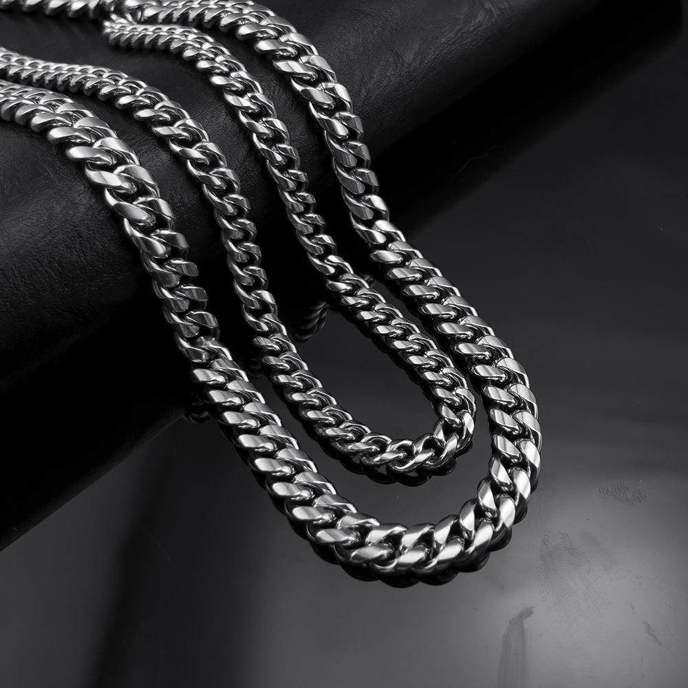 钛钢项链 潮牌古巴链夏季百搭男士项链嘻哈街头个性简约银色链条