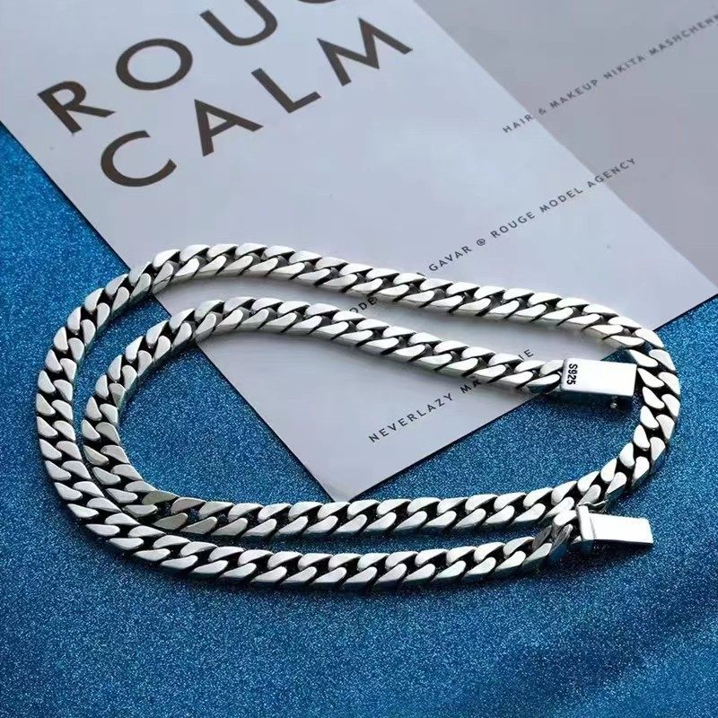 S925纯银古巴项链男士复古泰银潮牌项链个性百搭嘻哈插销款环扣环