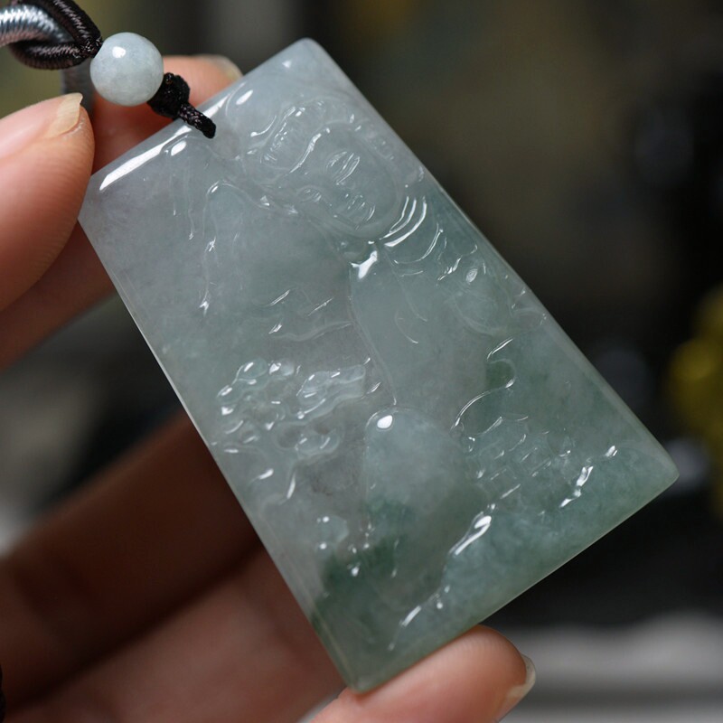 天然A货翡翠观音吊坠男大款观音玉坠缅甸翡翠玉石加工雕刻玉观音
