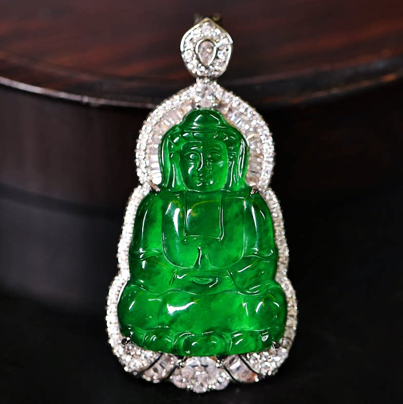 【颖有尽有】天然A货翡翠豪镶冰种满绿观音吊坠百搭款KBR51211001