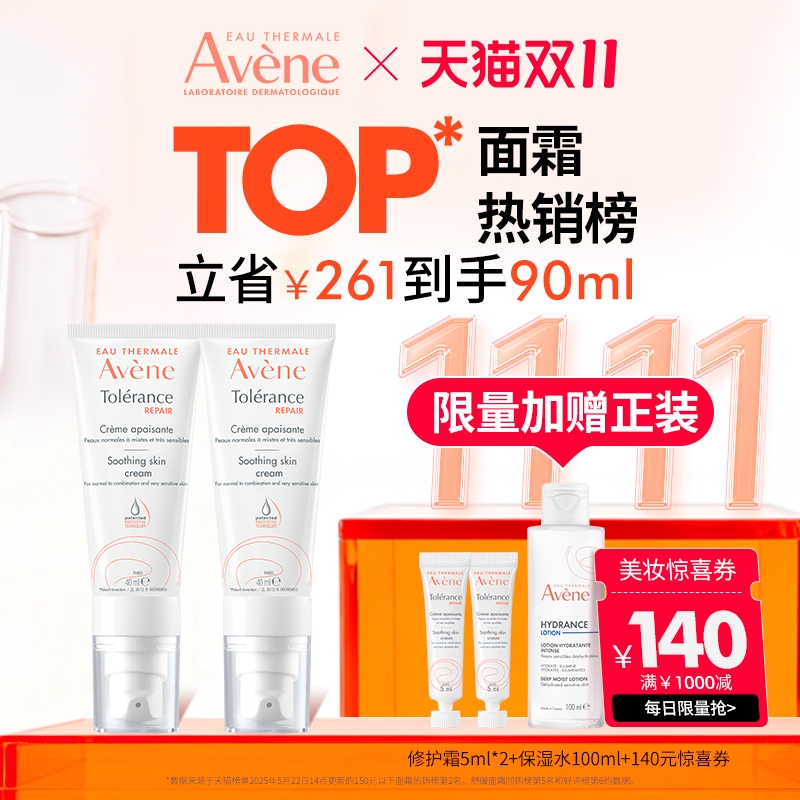 【双11最后一波】雅漾专研修护霜舒缓褪泛红敏感肌补水保湿面霜