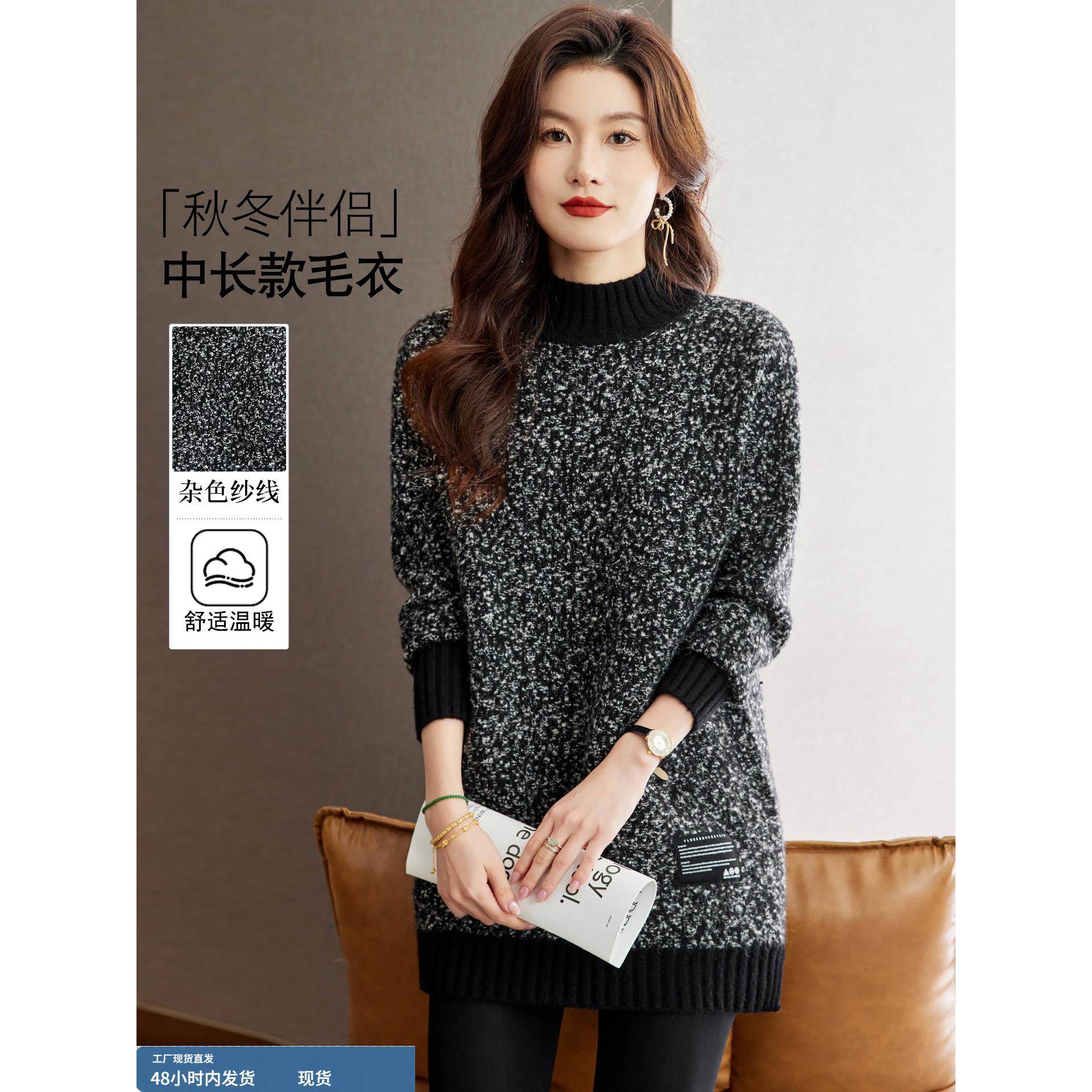 2025年秋冬新款中长款半高领套头毛衣女加厚针织衫洋气外穿长袖潮