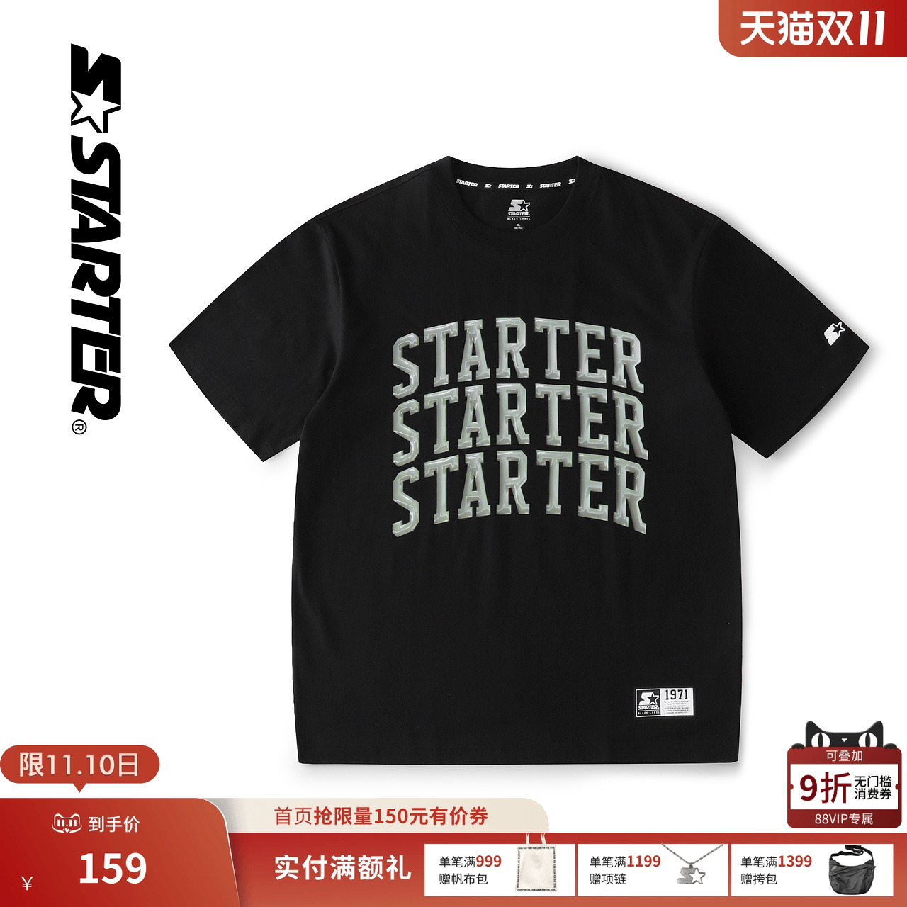 STARTER|T恤棉黑色字母宽松百搭时尚通勤休闲男女同款短袖上衣