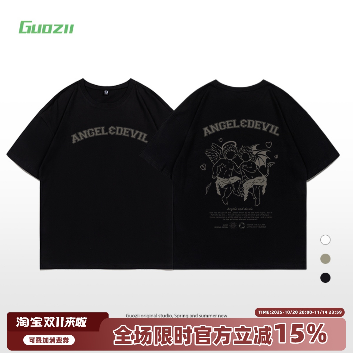 2025秋季新款黑色字母印花街头青年男女情侣款宽松重磅短袖T恤INS