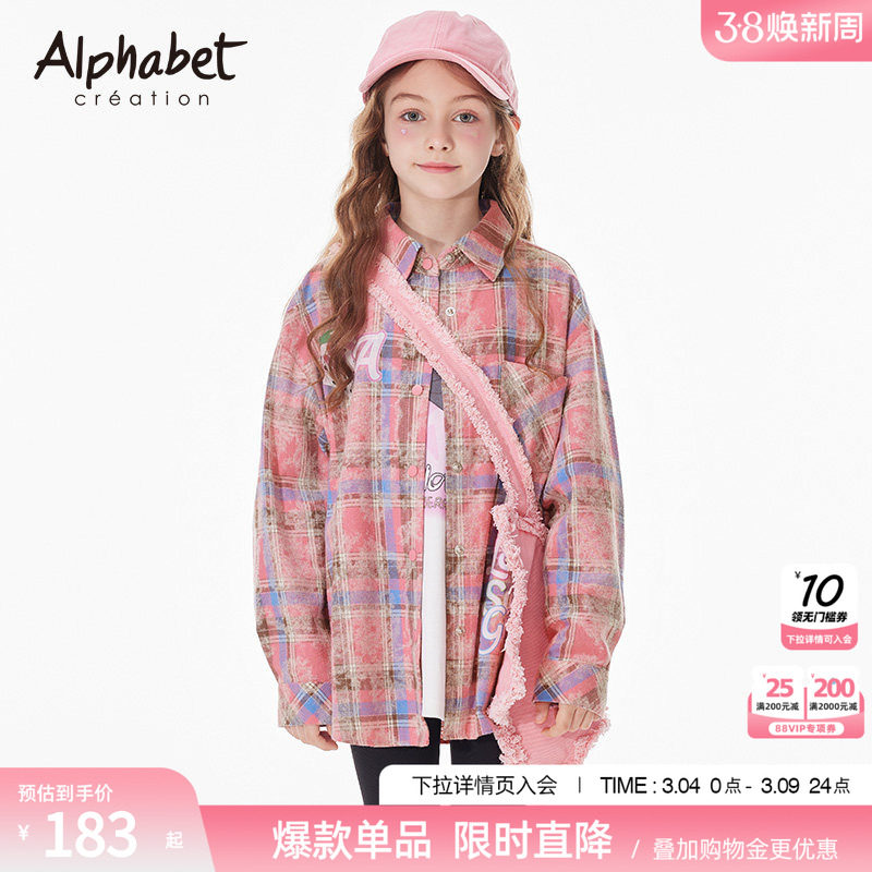 爱法贝2026春夏新款女童长袖衬衫中长款宽松儿童装格子衬衣外套