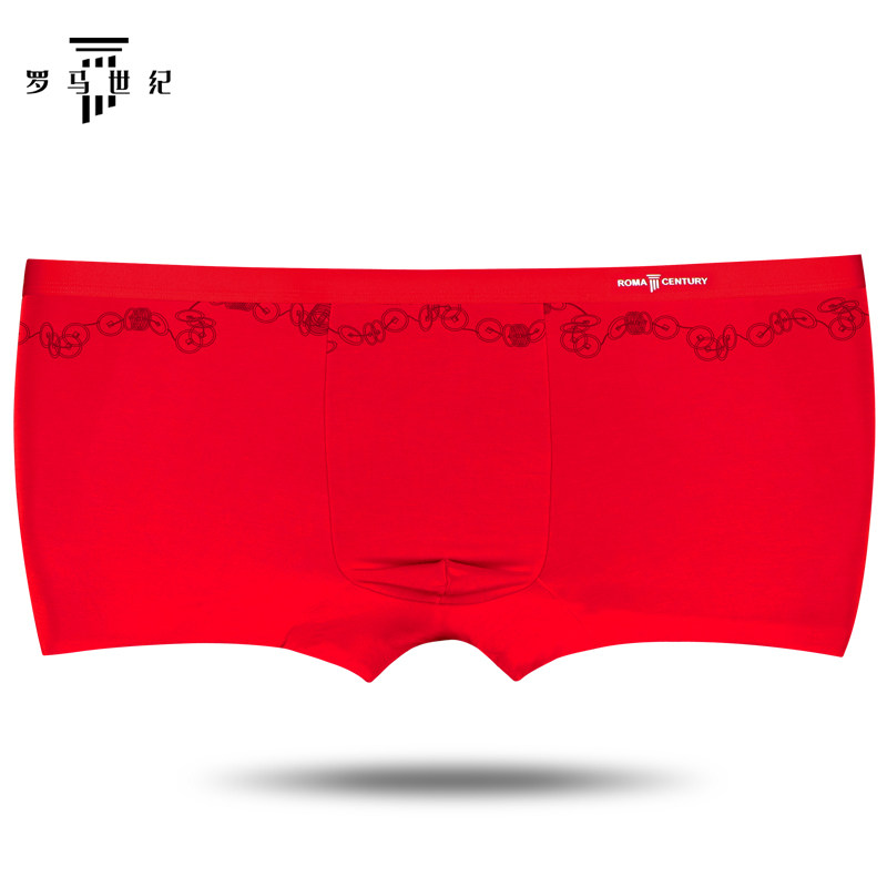 罗马世纪红色本命年莫代尔内裤男平角裤加肥加大码宽松肥佬裤抗菌
