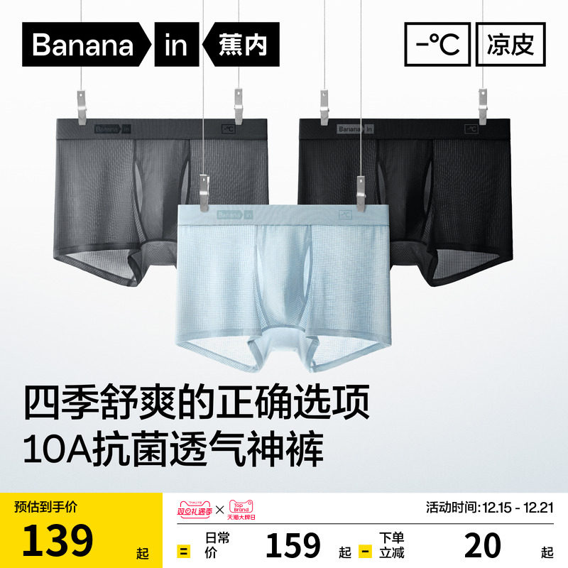 3件蕉内凉皮501Cool男士平角内裤冰丝莫代尔透气四角短裤男生新款