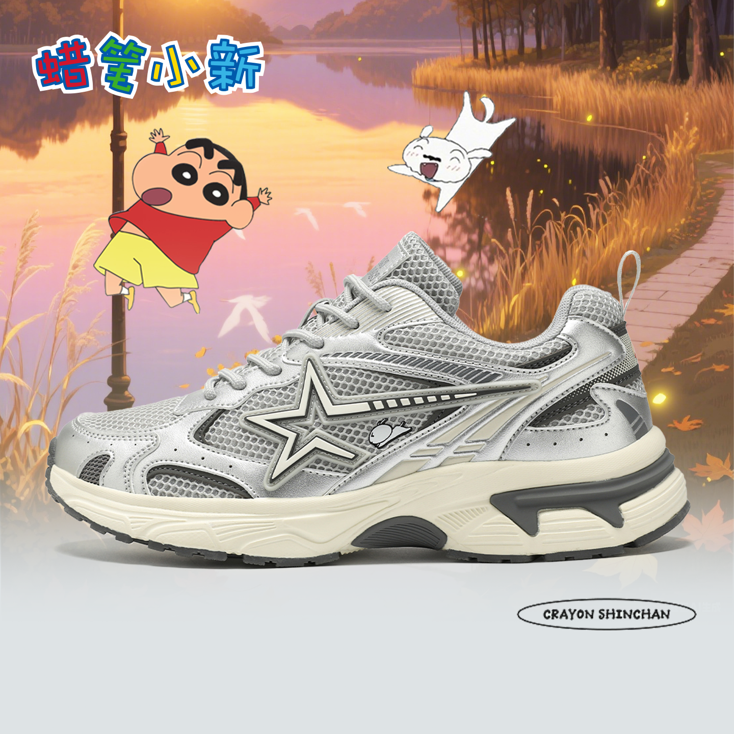 蜡笔小新旗舰店联名鞋子女银灰色星星运动鞋春秋缓震跑步休闲鞋女