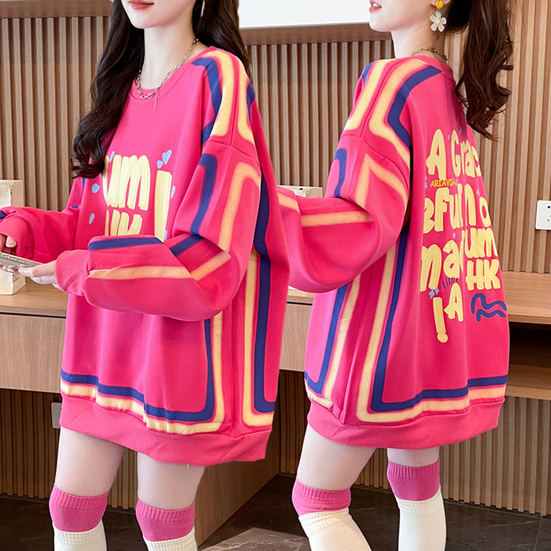 大码女装胖mm圆领薄款卫衣女春秋新款韩版宽松百搭慵懒风洋气上衣