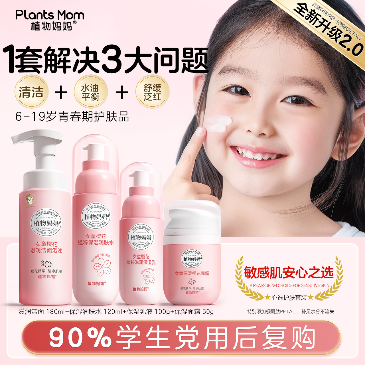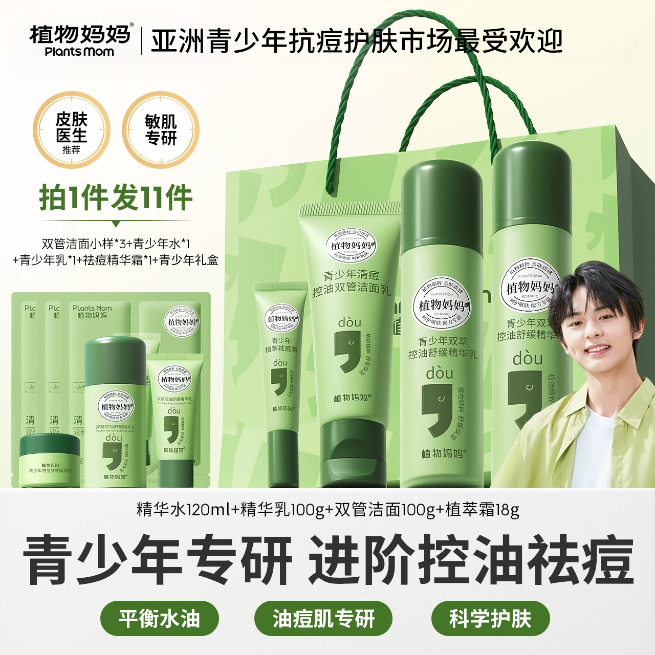 植物妈妈青少年护肤品女孩男孩祛痘套学生装痘痘肌专用官方旗舰店