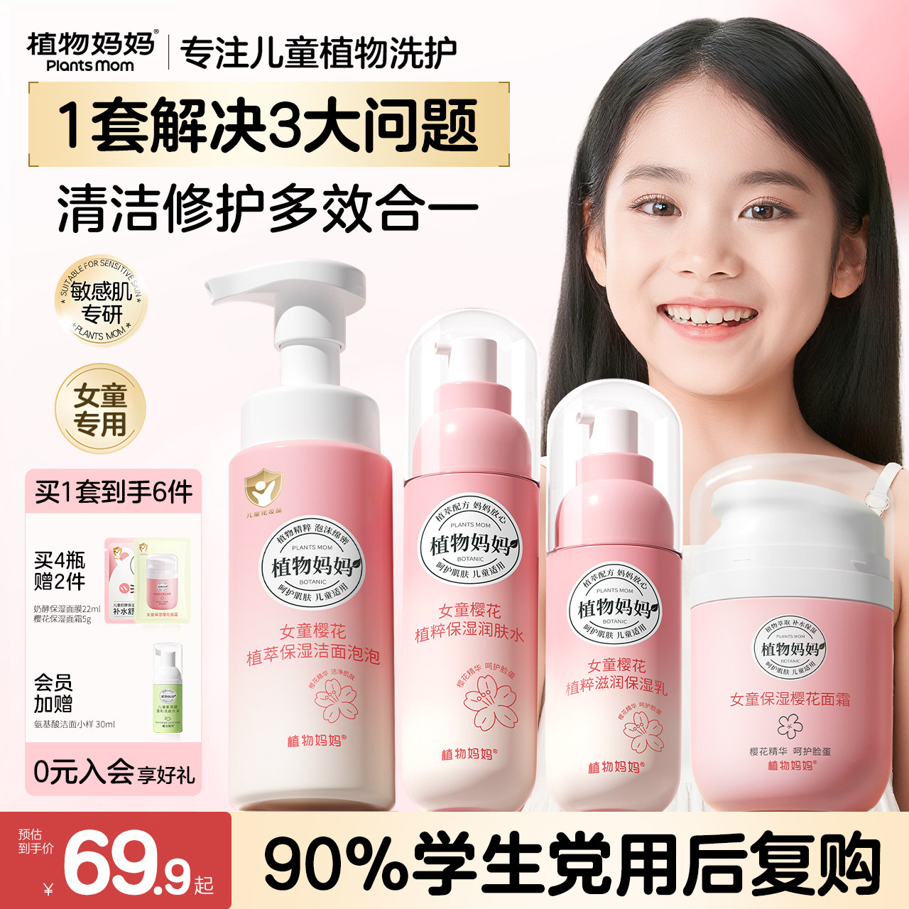 植物妈妈儿童护肤套装洗面奶6到12岁青少年女孩护肤品旗舰店正品