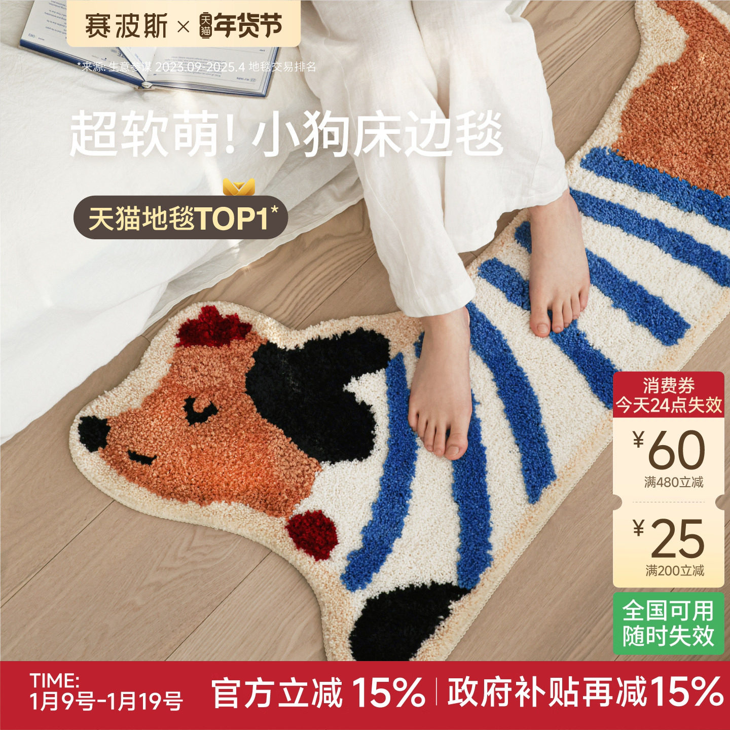 赛波斯小狗异形床边毯多巴胺儿童房可爱毛绒地毯客厅卧室装饰地垫