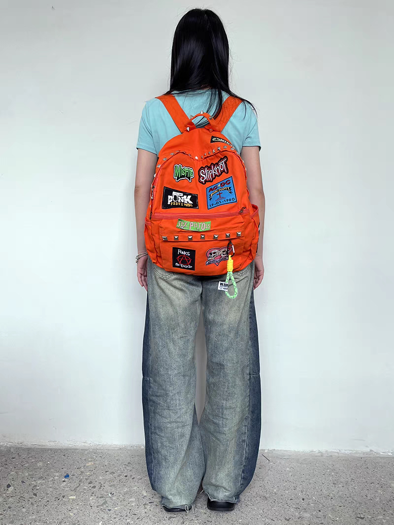 原创 朋克摇滚亚文化刺绣铆钉学生大容量书包y2k辣妹个性双肩包潮