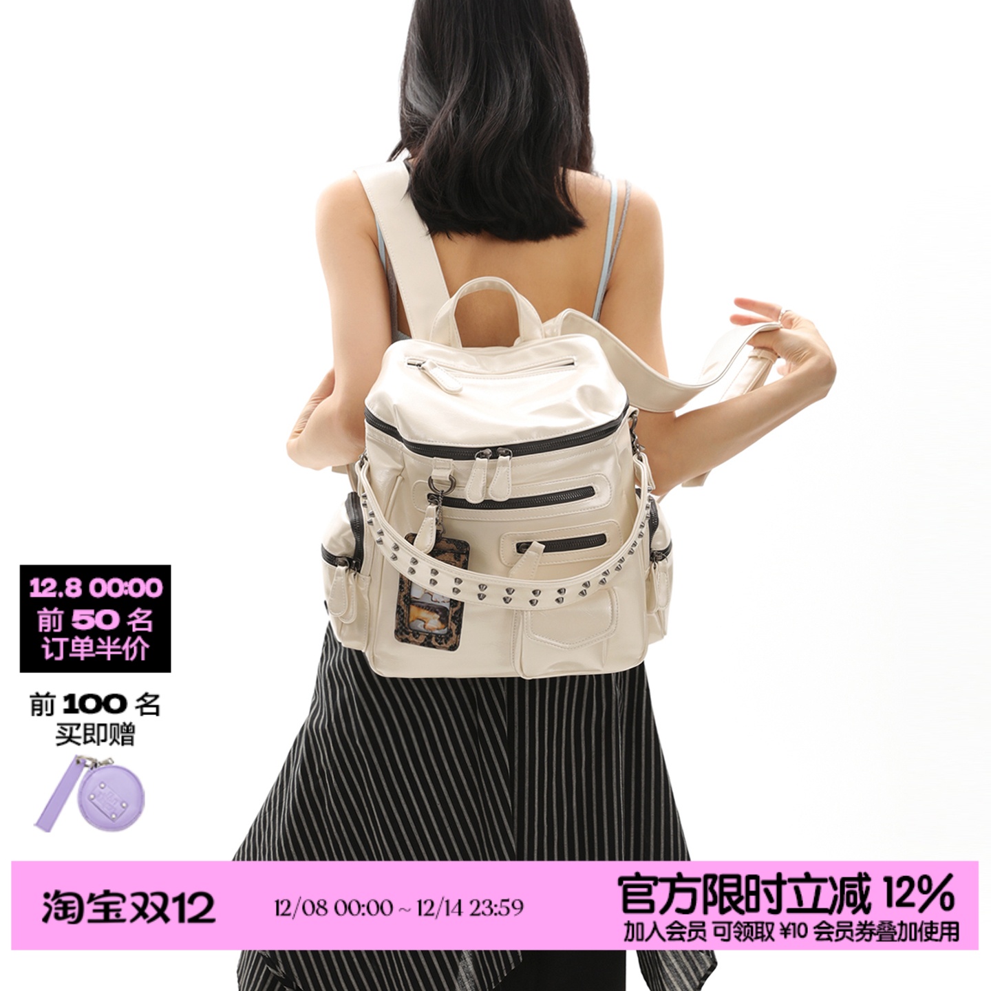 简着 /原创 五色 里斯林肯 多口袋拉链辣妹铆钉机车Y2K单肩双肩包