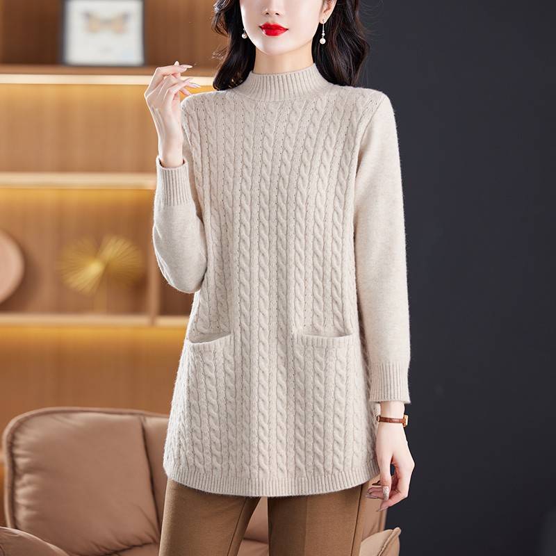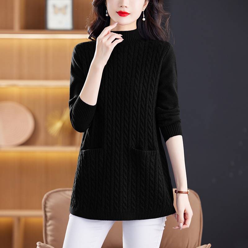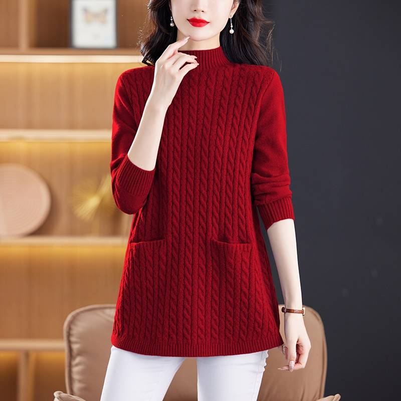 中长款红色毛衣裙女士秋冬2024新款中年妈妈配大衣内搭针织打底衫