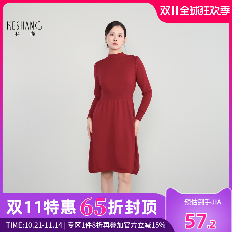 科尚新年战衣红色毛衣裙女2025冬新款高级感气质半高领针织连衣裙