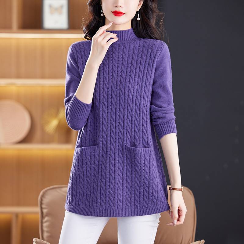 高级感围巾领新年红色毛衣裙女中长款慵懒时尚大码加厚羊毛打底衫