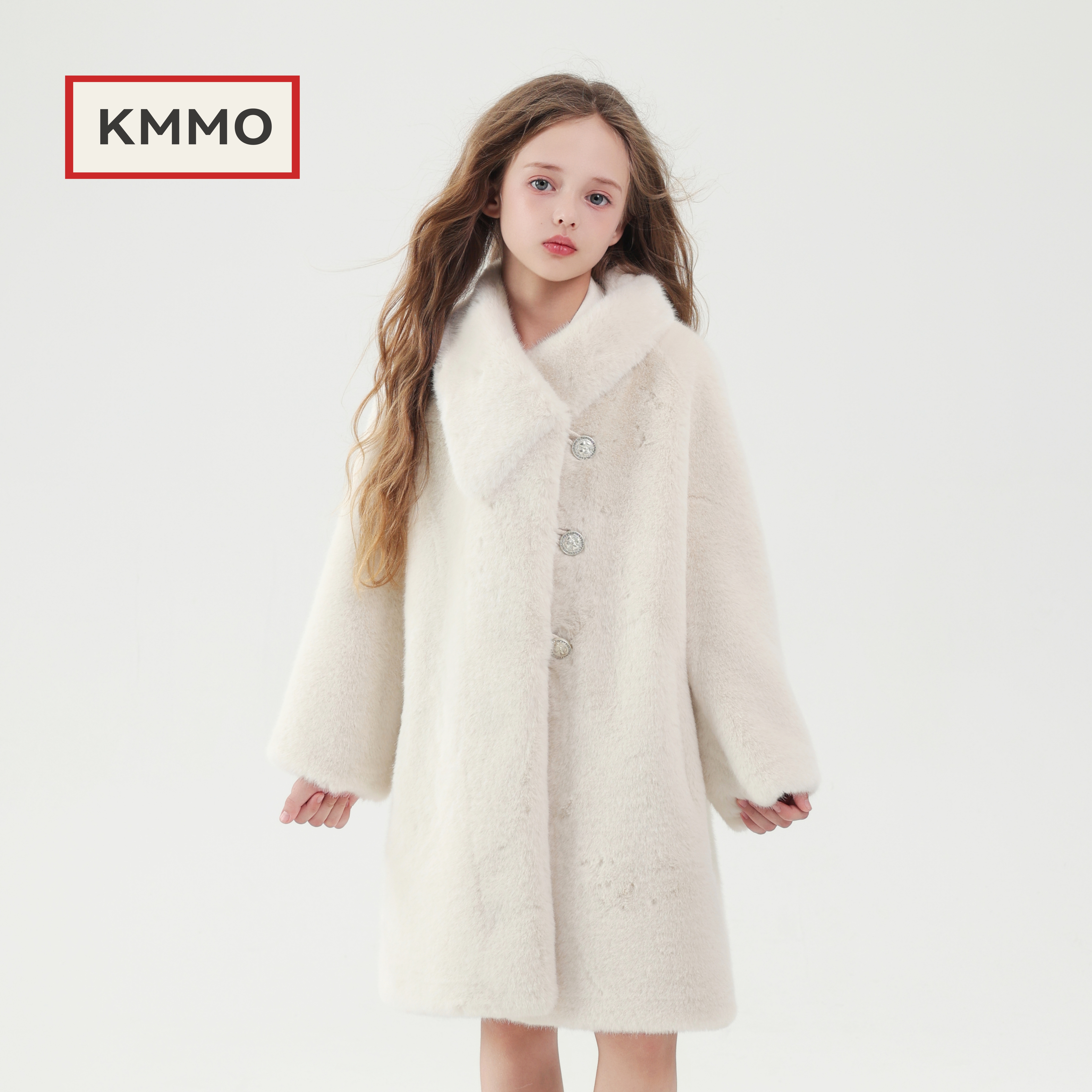KMMO女童皮草外套2025冬季新款儿童仿羊羔毛大衣加厚中长款童装