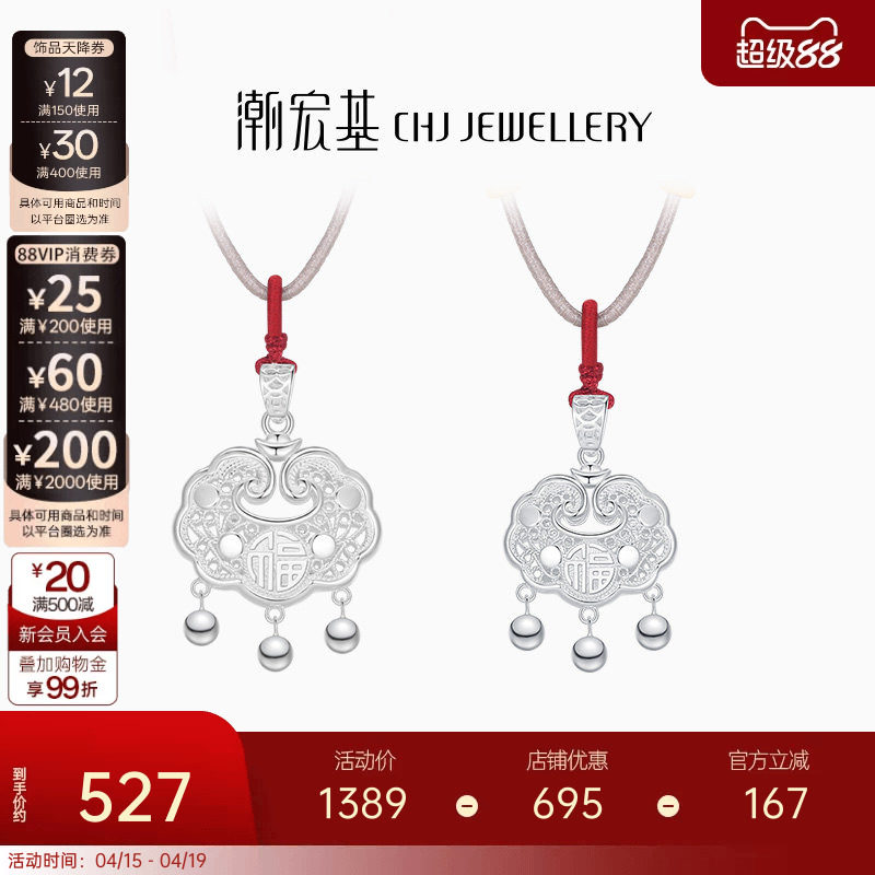 潮宏基好事发生宝护福锁包足银项链银饰套链坠链亲子儿童周岁礼物