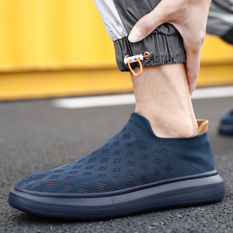 啄木鸟网面男鞋夏季新款镂空透气薄款飞织网布鞋男轻便软底一脚蹬