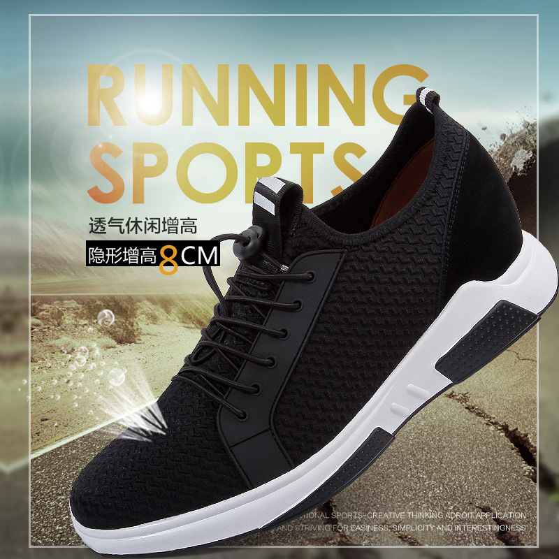2025年秋季新品透气运动休闲鞋子黑色厚底舒适跑步网布鞋男鞋45码